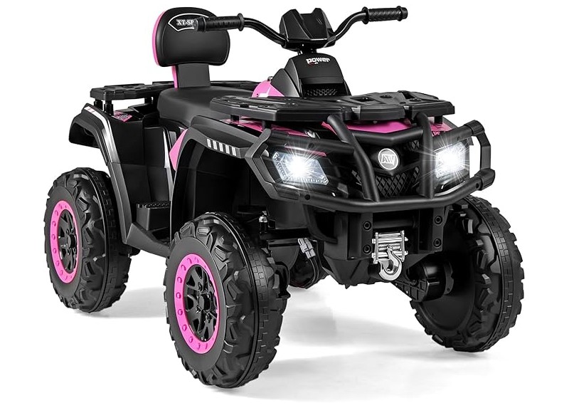 Quad Elettrico a 2 Posti. Questo quad elettrico è alimentato da una robusta batteria ricaricabile da 24V/7Ah, garantendo un tempo di gioco prolungato per i tuoi piccoli esploratori. Inoltre, i 2 spaziosi sedili con schienale comodo e poggiapiedi consentono di condividere insieme il piacere di guidare.